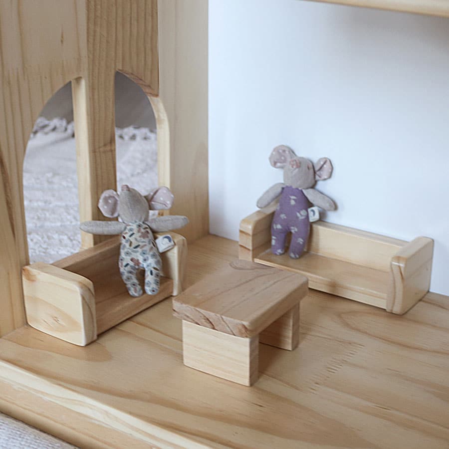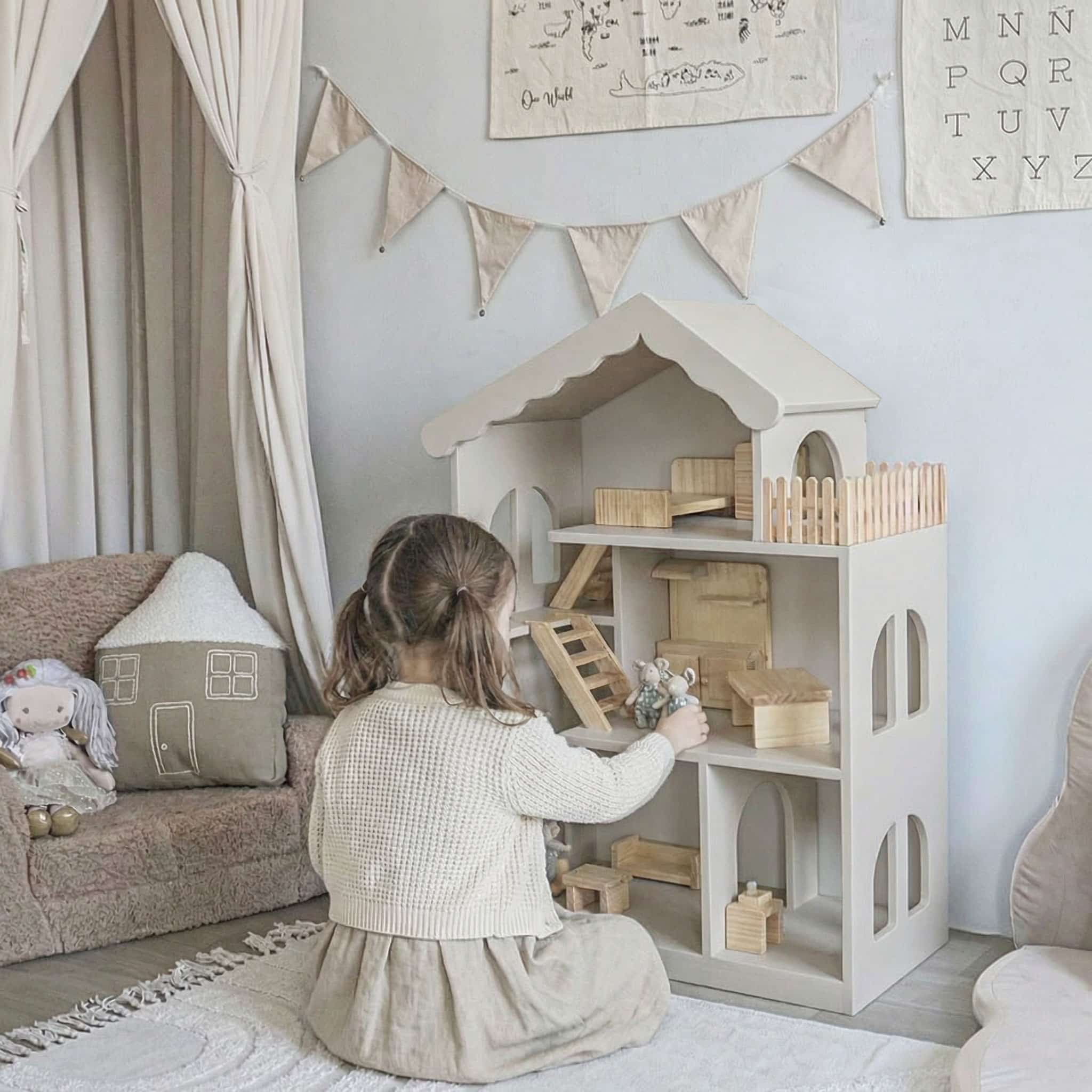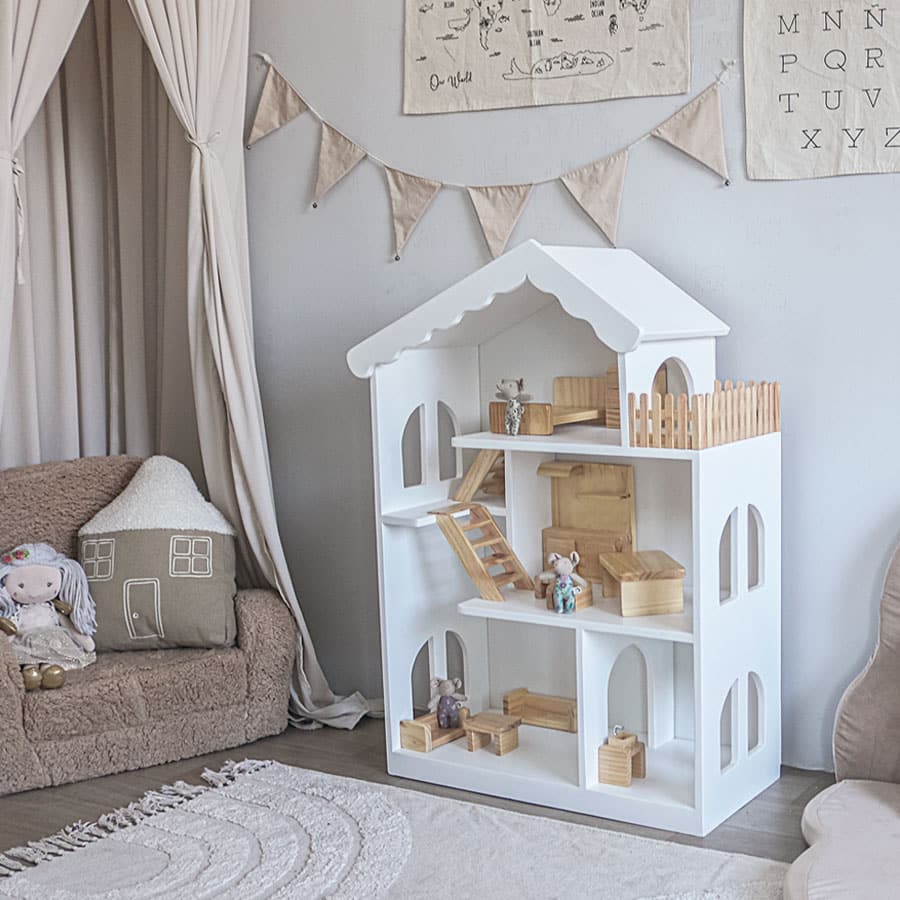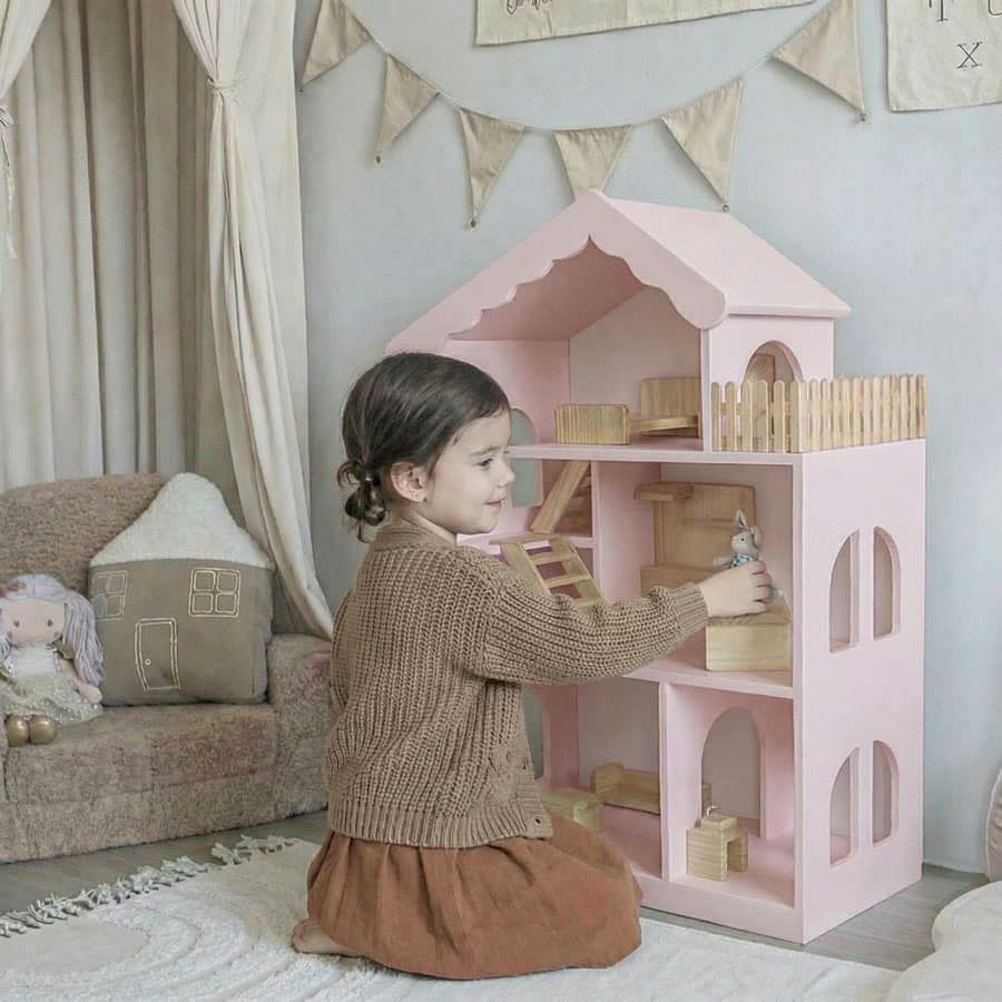 Diseñada con detalles delicados y un hermoso acabado, esta casita es el escenario perfecto para despertar la imaginación y el juego creativo de tu pequeña.